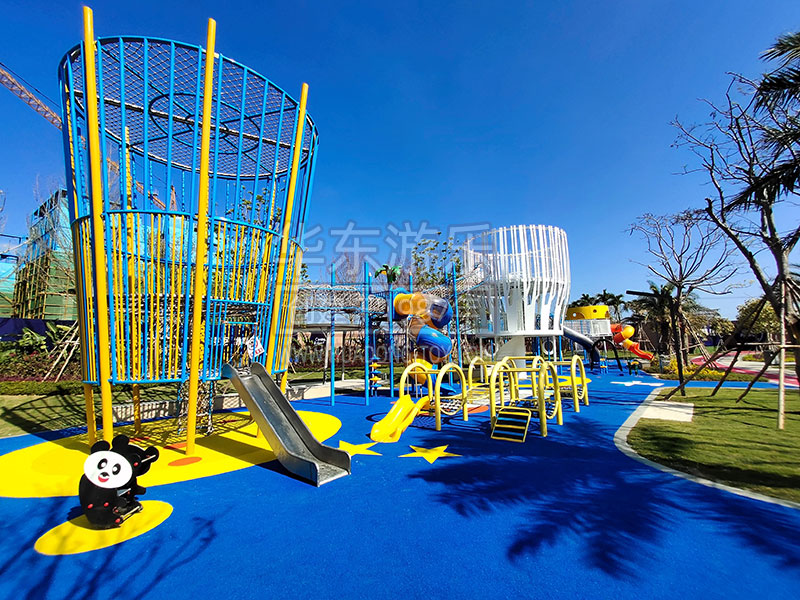 高矮错落、动静结合、水陆相接这是无动力游乐设备布局的一些就简单技巧,许多相同类别但具体功能不同的游乐设备利用这样的互补准则会得到一个更为理想的效果。在一定区域内一定要让小朋友体验到更多的、不同的设备,这样会最大程度地满足他们的体验感,例如大型的水上滑梯,水乐园与滑梯结合这样的设备布局一举多用。