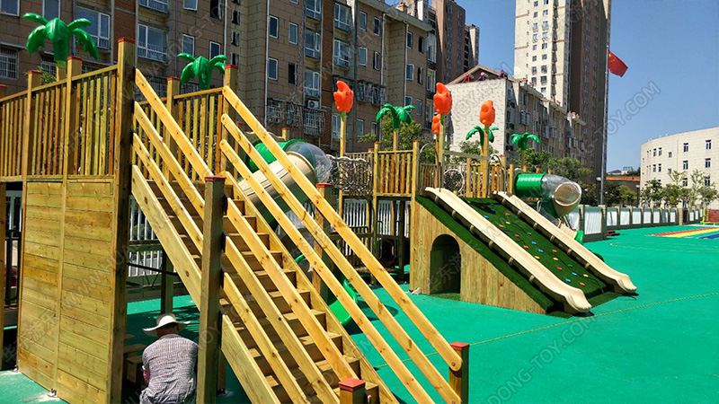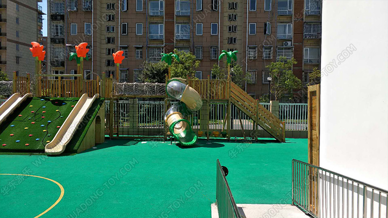 • 该案例根据幼儿园的实际场地进行规划的游乐场,以小朋友的艾攀、爱爬、爱钻等天性,该项目设置了爬网、木制滑梯、攀爬墙等游乐设备,整个项目设计美观,实用性强深受当地小朋友的喜爱。
