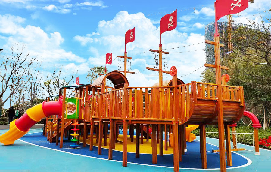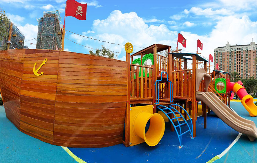 非标木制滑梯组合案例采用海盗船的设计主体为原型设计,增加了大型滑梯组合以及攀爬、钻洞等功能,整个主体设备采用木制结构,乐鱼LEYU游乐生产的木制游乐设备具有颜色艳丽、外观漂亮,实用性强、经久耐用、安全性能好等特点,为小朋友的玩耍提供了一个很好的场所。