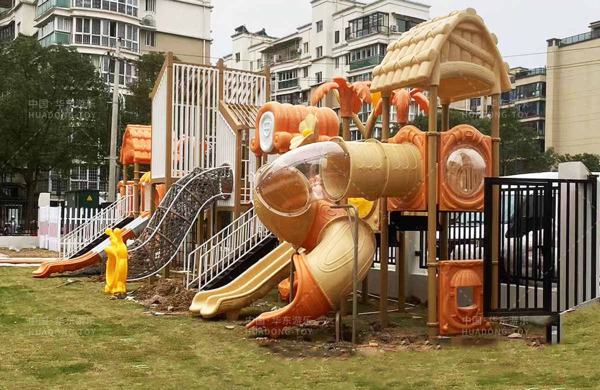 永嘉县童真幼儿园是一家专业的学前培训学校,此次选用的儿童游乐设备是乐鱼LEYU游乐自主研发和设计的大型户外组合滑梯,该滑梯是一款具备了攀爬网、大型滑筒、旋转滑梯、直行走梯、双人滑梯等功能为一体的综合性游乐设备。