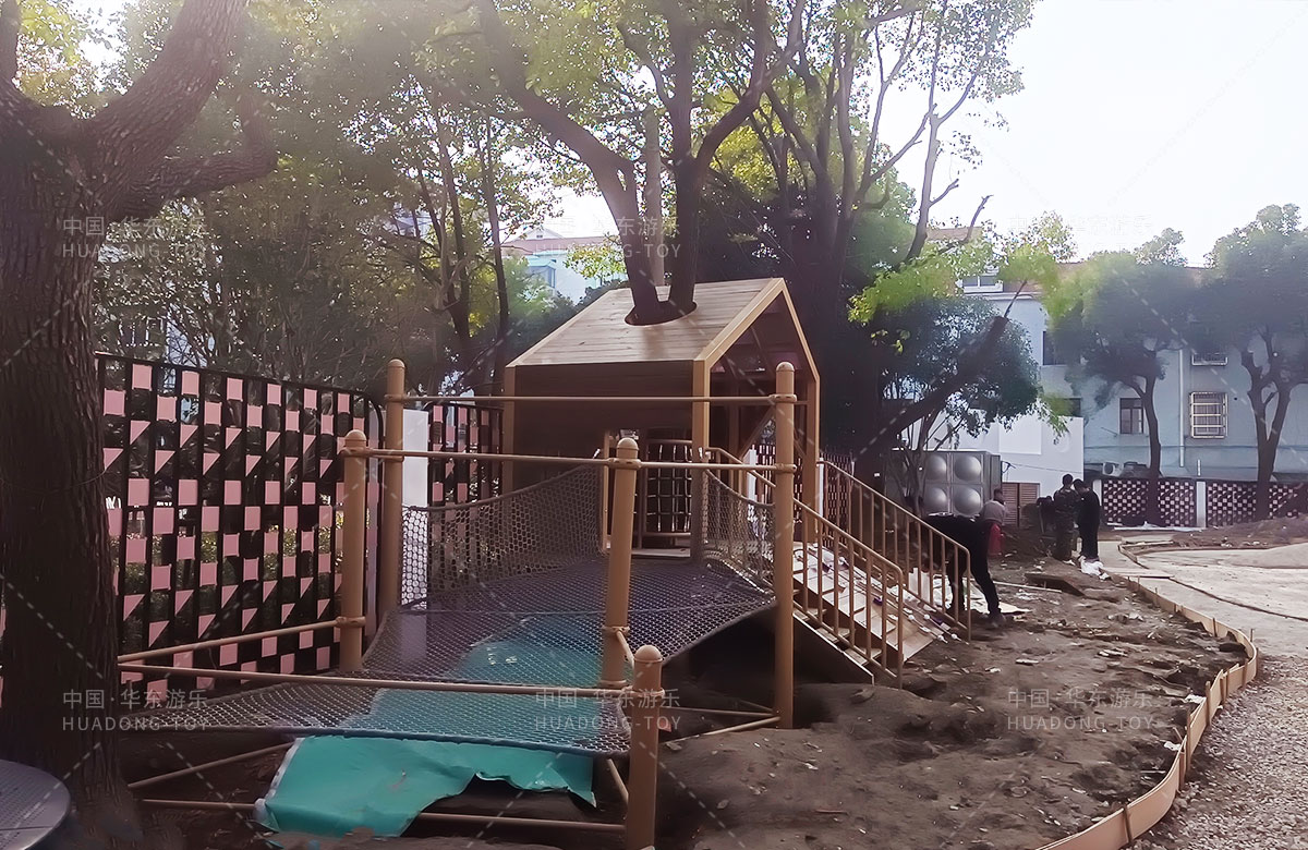 虹口区实验幼儿园简介创建于1993年9月。1994年定为一级一类幼儿园。儿园具有现代化的设施和美丽童趣的园舍。总占地面积4800多平方米。建设面积3000多㎡。绿化面积1800多㎡。 此次幼儿园游乐项目选择的是乐鱼LEYU游乐自主研发和设计的一款综合性木质系列非标定制产品,不仅功能齐全,主体性也非常的适合幼儿园的场景设置。