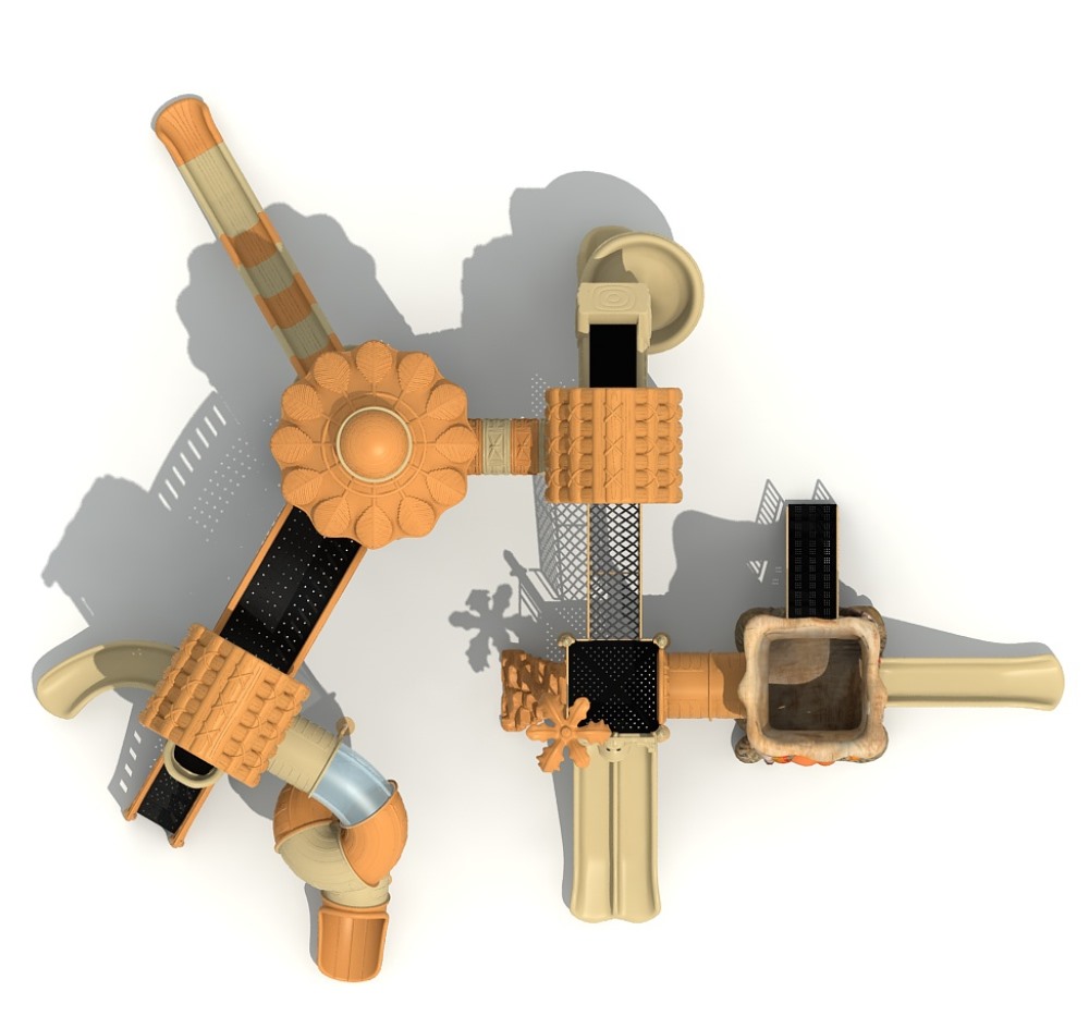 • 远古部落系列虽然名字带着“古”字,但是在设计细节处无不透露着艺术与创造性。当孩子在仿真树中探索、冒险、嬉戏游玩时,就像穿越到古老的神秘森林;粗略的树干包围着他们,头顶是高耸的茅草屋,触感真实的枯枝走廊,还有随处可见的小动物们…… 远古部落系列旨在打造区别于其他系列带给孩子们的新鲜感,让孩子们找设计者打造的神秘世界中获得冒险的乐趣。