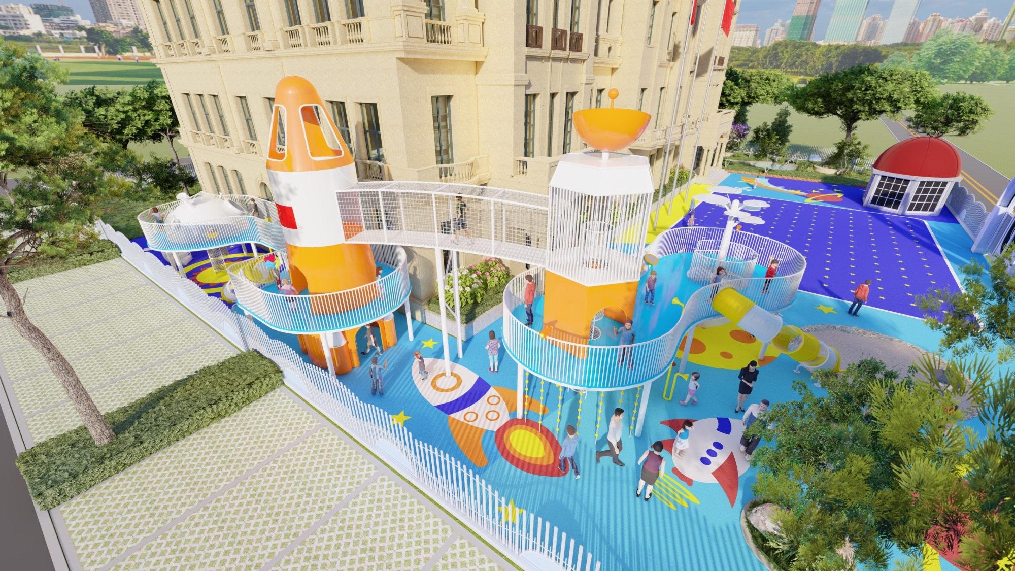 主题公园、学校、房地产小区、市政广场、超市、酒店等